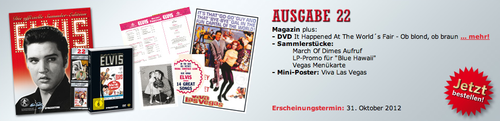 Volume 22 in the German "Elvis-Sammlung" by DeAgostini and EPE was released. Besides the DVD "It Happened At The World's Fair", a magazine, memorabilia reproductions and a mini-poster from the movie "Viva Las Vegas".